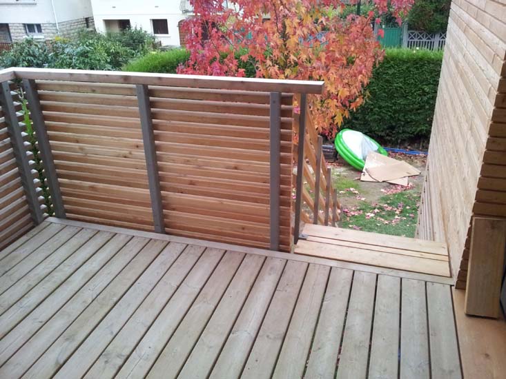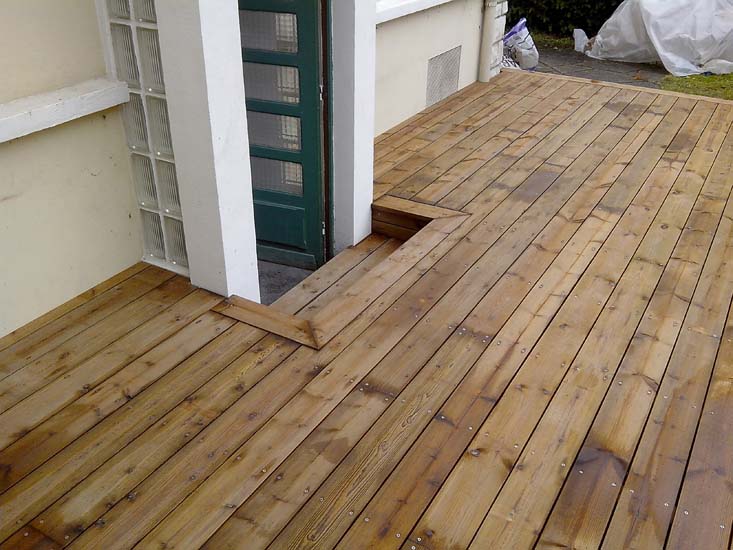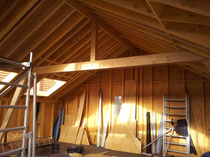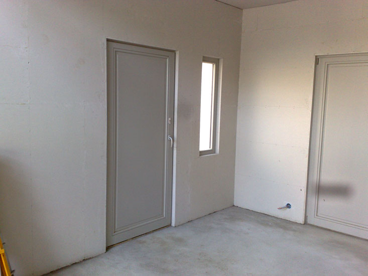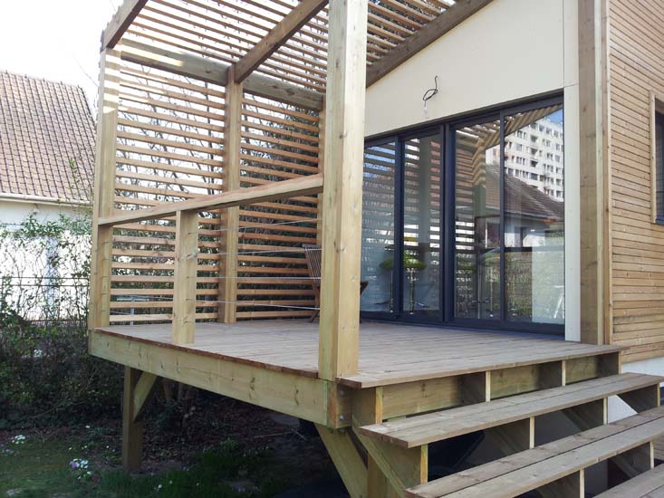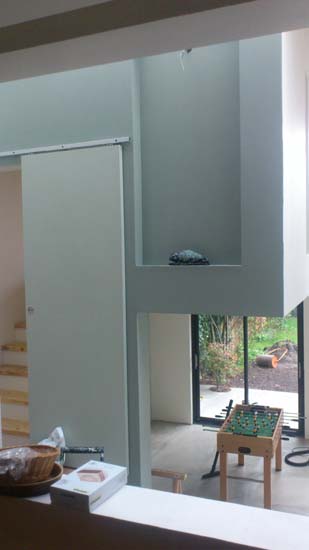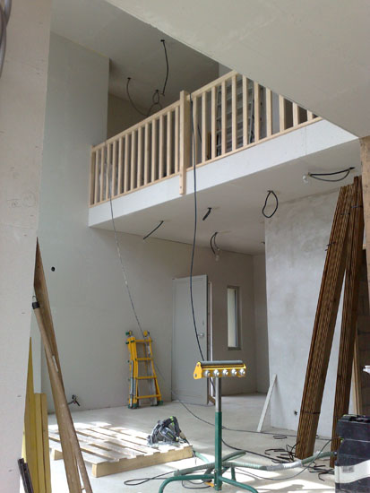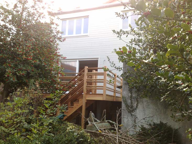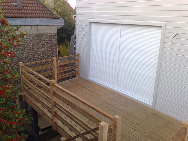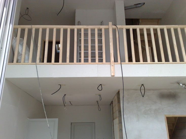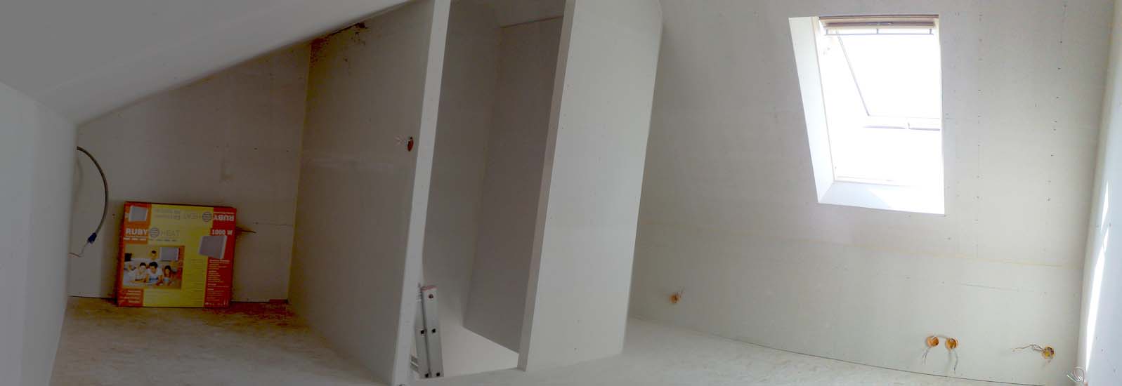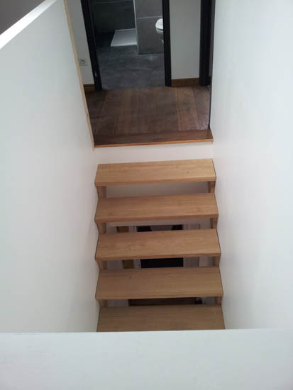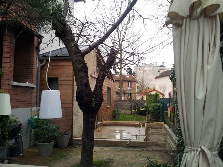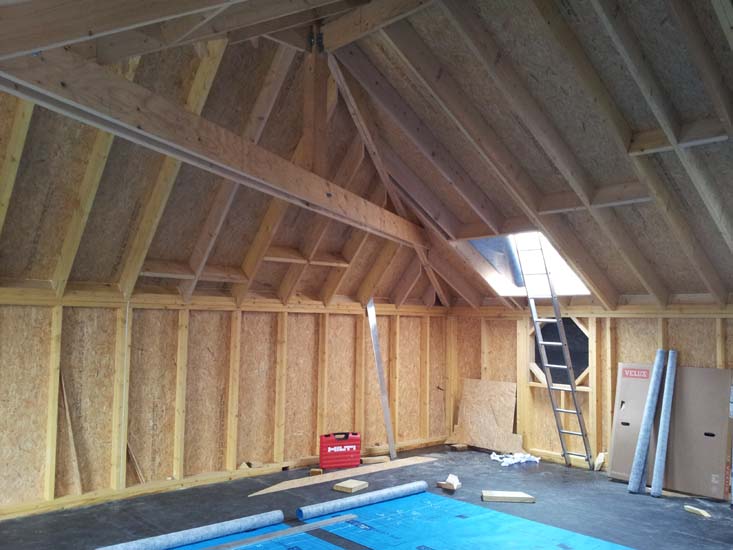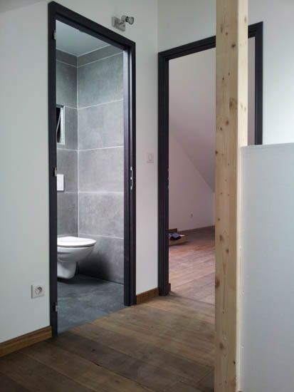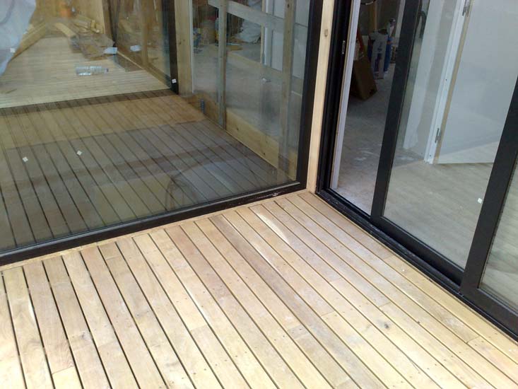 Extension sur deux étages. Toiture avec étanchéité EPDM, skydôme et végétalisation. Isolation extérieure de l'existant et bardage bois en mélèze de l'ensemble.