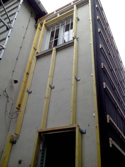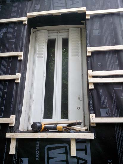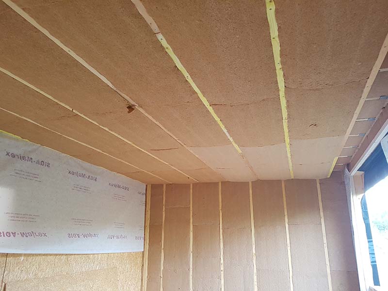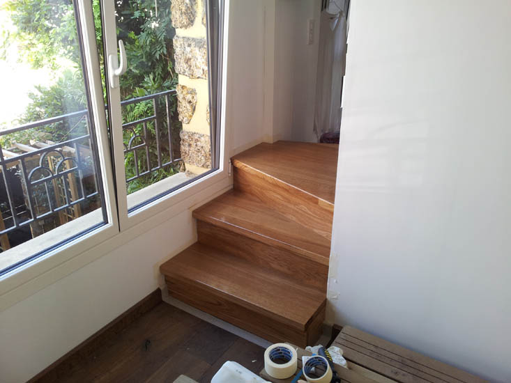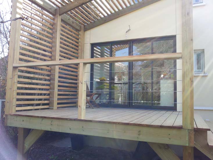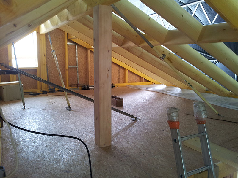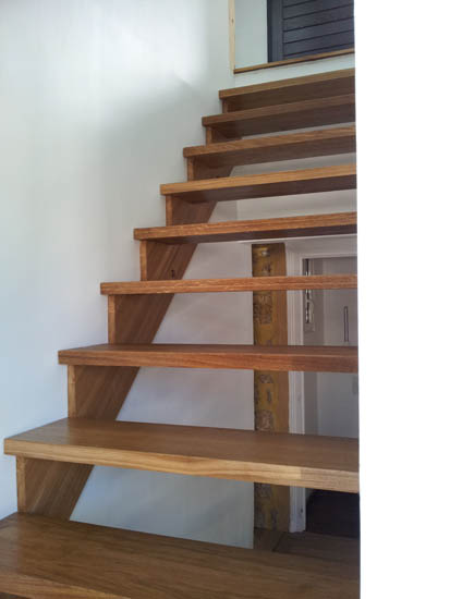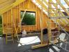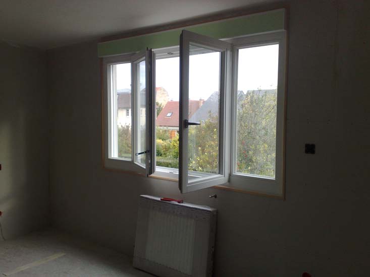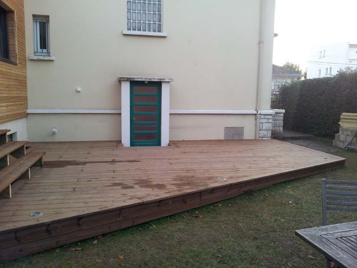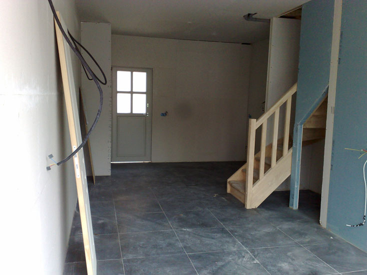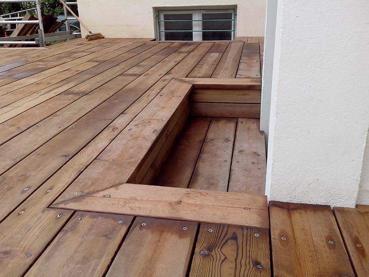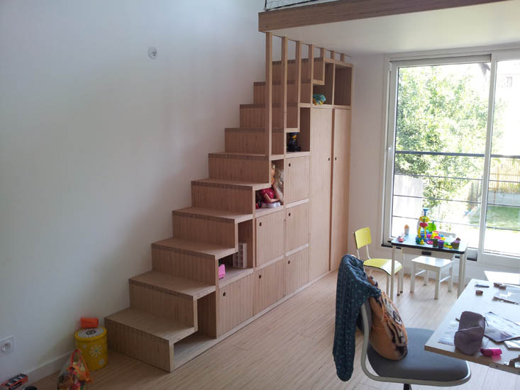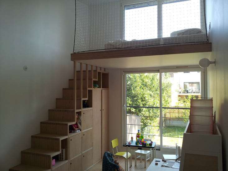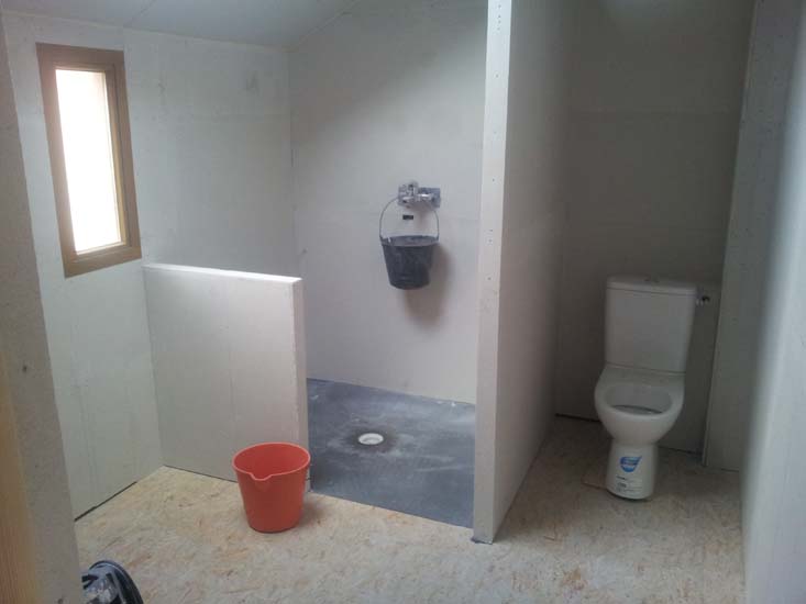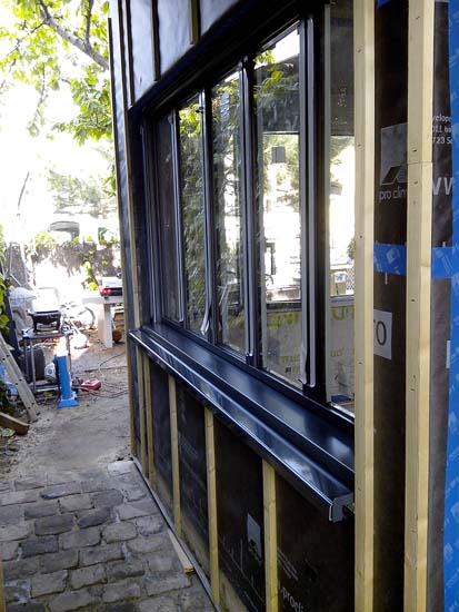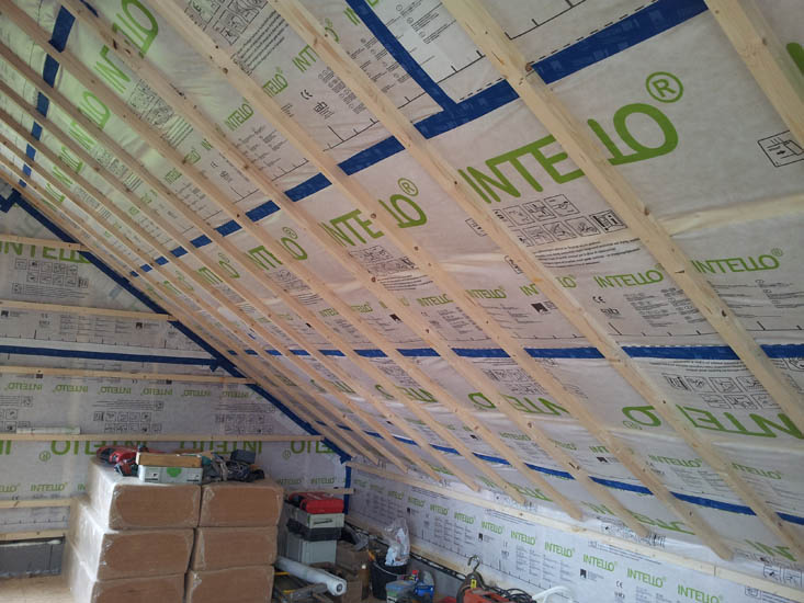 Extension sur deux étages. Toiture avec étanchéité EPDM, skydôme et végétalisation. Isolation extérieure de l'existant et bardage bois en mélèze de l'ensemble.